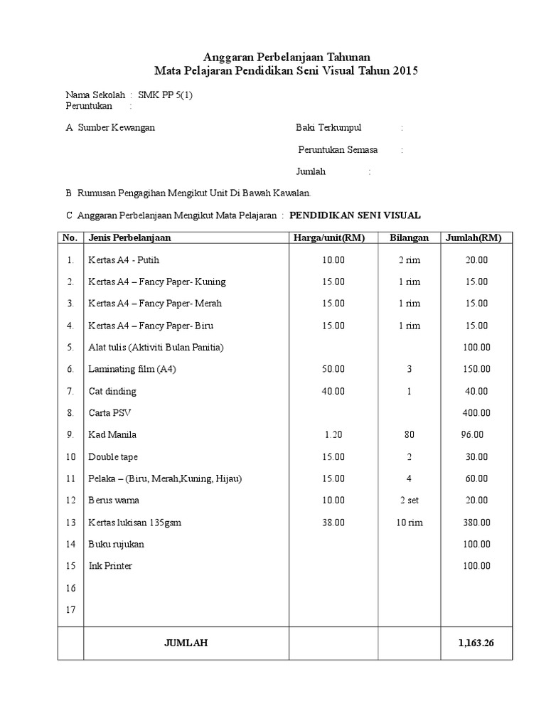 Anggaran Perbelanjaan Tahunan Panitia Psv Pdf