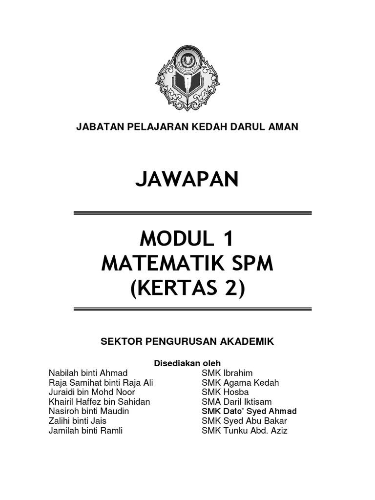 Modul Cemerlang Matematik Jpn Kedah 2016 Jawapan Pdf High Schools And Secondary Schools Schools