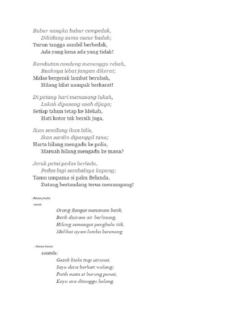 Pantun gaya barupola AABB Banyak bunga di taman cuma satu kupetik Banyak anak perawan cuma Adik yang cantik Pria. Banyak cara yang bisa dilakukan untuk memperingati Hari. Pucuk pauh delima batu Anak sembilang di tapak tangan.