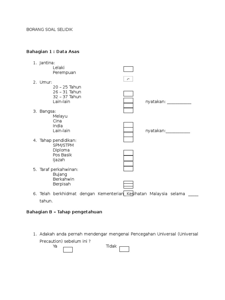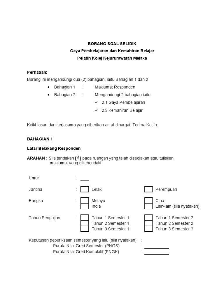 Contoh Borang Soal Selidik Latar Belakang Responden Otosection