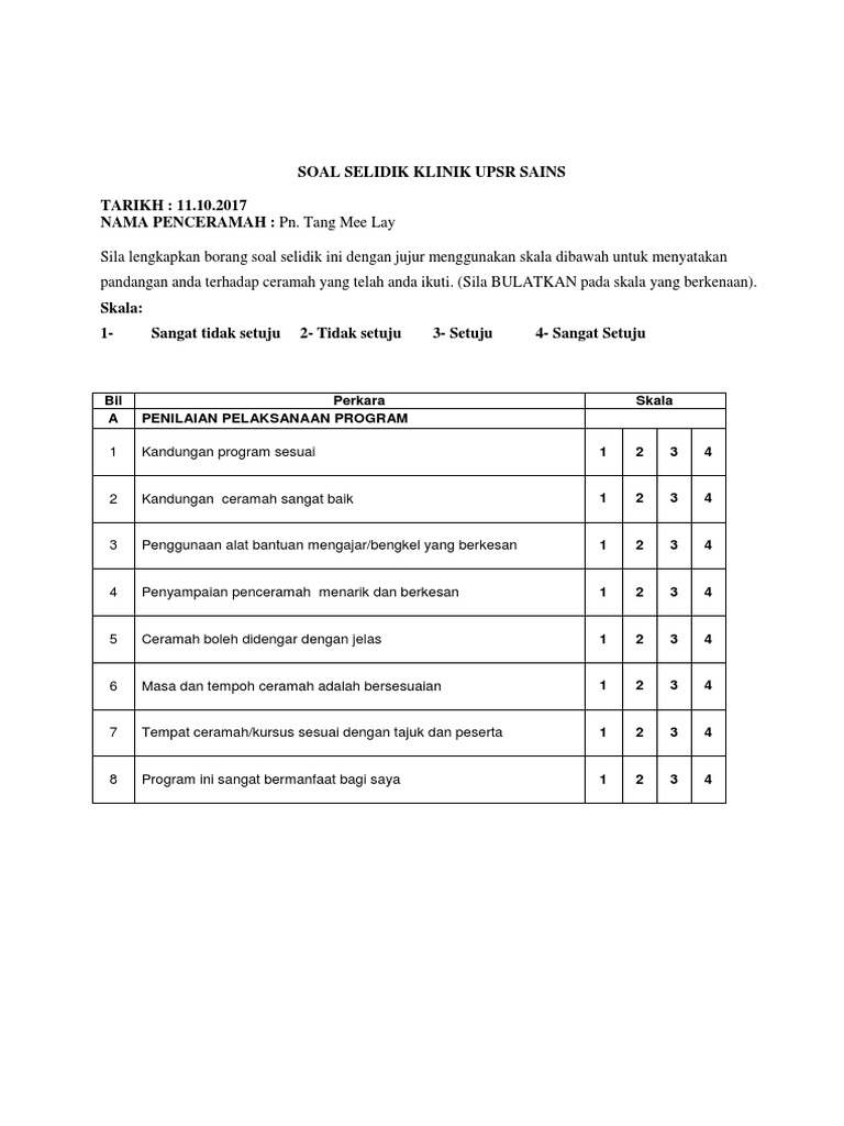Borang Soal Selidik Kajian Kepuasan Pdf