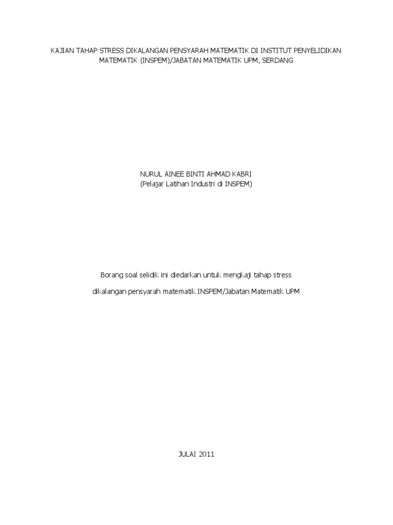 Borang Soal Selidik Kaji Tahap Stress Pdf