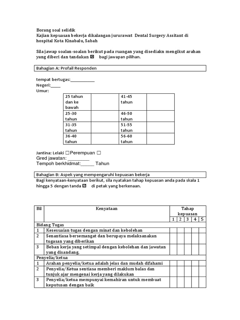 Pdf Kajian Kepuasan Bekerja Jan Jun 2012 Borang Soal Selidik Kajian Kepuasan Bekerja Jabatan Pertanian Faizal Hassan Academia Edu